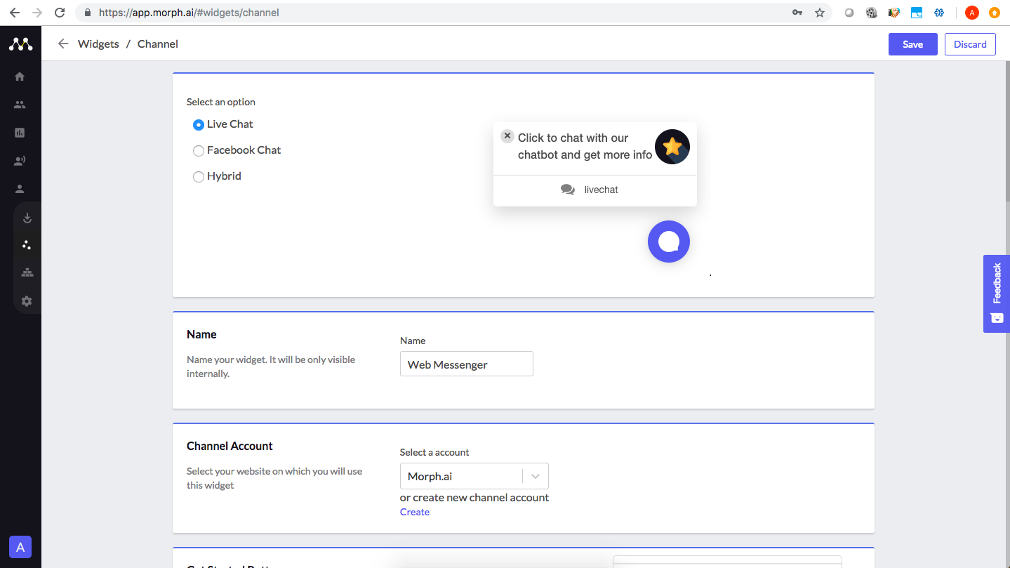 The deployment process is made simple my the Morph.ai platform. It is divided into two sections, Source and Channel. Channel Channel tab lets you choose the channel through which you want to reach out to the users. You can either interact with your ...